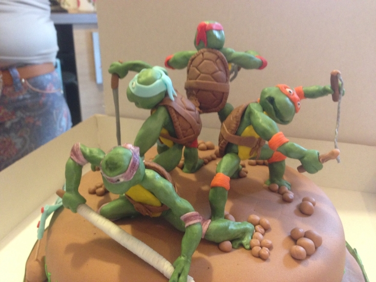 Лица хорошие (хотя есть косяки, например не до конца заглаженны рот, после того как прорезали, но это ерунда) ну и слишком худые ляжки и плечи, черепахи все таки мощные парни мутанты))) По поводу выравнивания, у вас с ним впринципе проблема (без обид), торт низкий очень, нет острого края, мастика чисто визуальна толсто раскатана. Я думаю что все таки масло растояло из-за нескольких факторов (1. торт был выстоен менее 2 часов в холодильнике. 2. долго стоял на воздухе , а сейчас достаточно жарко на улице. И вообще мой совет, побольше времени тратить на торт, чтобы его вылизовать, чтобы он был супер аккуратный. Например чтобы фигурки не продавливали торт нужно их укреплять, как вариант трубочками. И смените выравнивающий крем, например на ганашь.