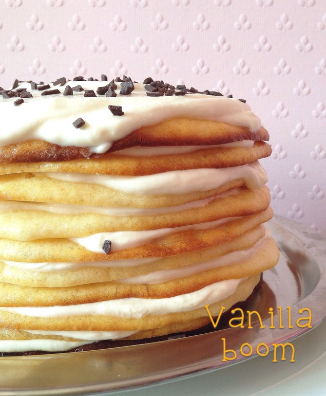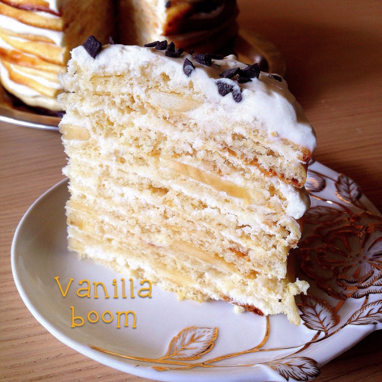 Муж не привез мне клубнику, о которой я так мечтала..а настрой был боевой, поэтому утром приступила! Буквально за час был готов тортик! Из одной нормы у меня получилось 12 коржей диаметром 16см. Коржики не тонкие, либо я сделала очень густое тесто либо размазывать нужно лучше.. 2 коржа сгорели, тк сделала очень тонкими. В результате торт получился, мягкий и нежный. Для начинки использовала просто банан и творожный крем.