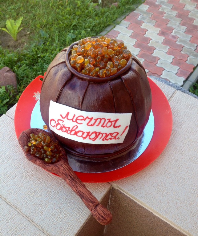 Проба пераХотела сделать папе на ДР бочонок с икрой, но получился скорее горшочек. Но имениннику понравилось)))) Внутри: шоколад на кипятке, творожное суфле с вишней, крем. Фото на пленэре. Попробовать сама не успела, поехали с сынулей домой спать, торт резали уже без нас(((