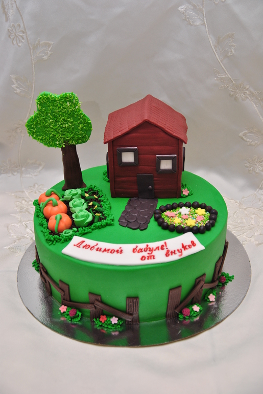 Давно не делала таких тортиков, тут просили и домик объмный (внутри торт) и деревце, конечно же огород и клумба)