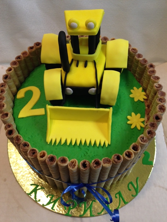 Хорошо сделан тортик, настоящая техника! А детки смотрят телевизор -телеканал Ти-джи! Боб строитель.
