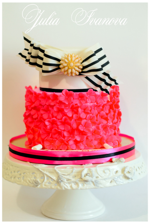 Юля, очень элегантный торт! Как можно так ровно полосочки из мастики сделать — у меня не получается.(
