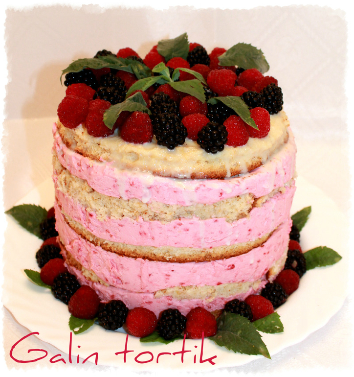 Была у меня проба пера! Naked cake. "Голый торт" - шифоновый бисквит+малиновое суфле. Вес 3кг. А повод - муж на 1 сентября пришел с работы с наградой!!! (он военный), для нашей семьи это очень значимое событие!