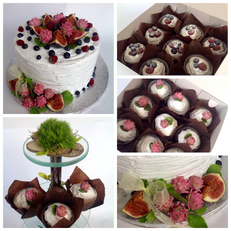Торты свадебныеТортик и капкейки.( мои первые 60 шт) уж очень невеста хотела видеть клевер в декоре десерта... Думаю вы его признали))))