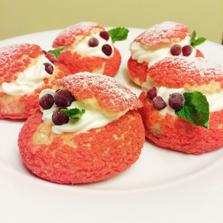 Печенье,пирожные,конфеты, выпечкаИх невозможно есть.. На них только смотреть! Шу с брусничным джемом и взбитым ганашем на белом шоколаде с кокосовым маслом!!!