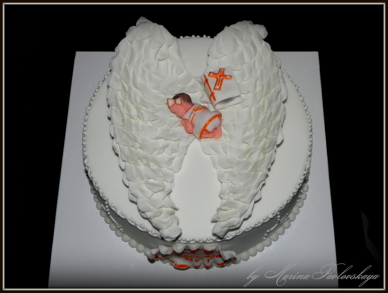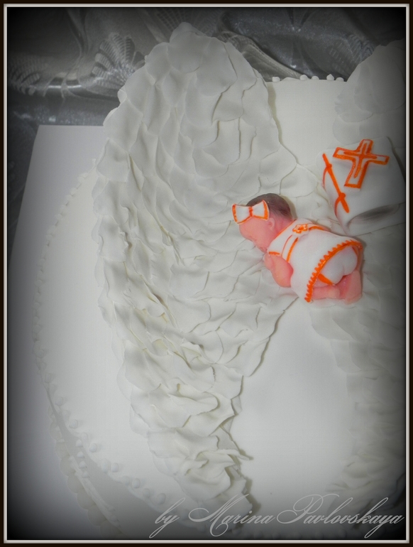 на здоровье!! ну, а тортик у тебя, как обычно, получился очень аккуратененький! чудесная тема для крещения!