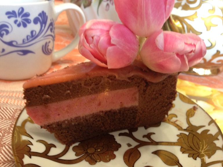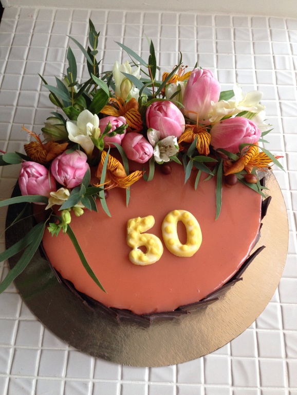 Украшение тортов кремом,шоколадом, фруктамиМой первый эксперимент с глазурью и живыми цветами. Внутри шоколадный бисквит и суфле малины и черного шоколада. Мама была приятно удивлена подарком и даже потеряла дар речи)))) ну а со вкусом тортика я угодила на все 100%.