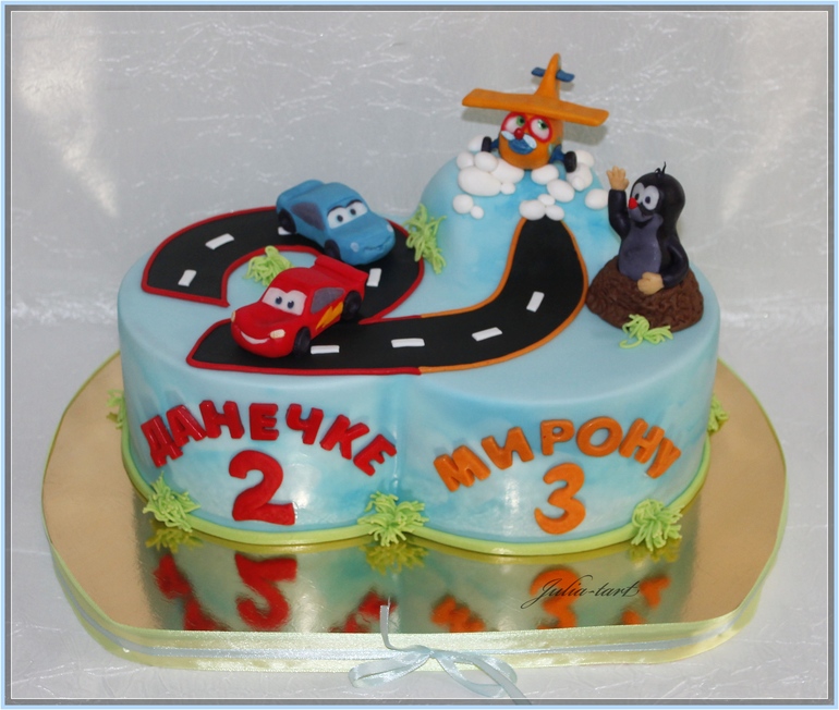 Торты детскиеДля двух имениннков , любящих разные мульты) Думаю всеми узнаваемы))