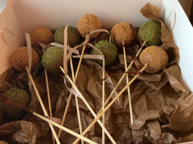 Кейк попсы - ванильные с крем-чизом в карамельном шоколаде.