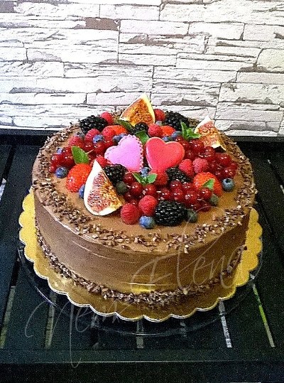Украшение тортов кремом,шоколадом, фруктамиУ меня сегодня тортик на годовщину свадьбы. Т.к. у ребенка, который тоже будет есть этот торт, аллергия на молочный белок, то задача стояла чтоб в составе не было ни молока, ни сливок, ни слив. масла. Бисквит шифоновый белый, крем заварной на кокосовом молоке с темным шоколадом, обмазала ганашем опять же из темного шоколада и кокосового молока. Вобщем с задачей справилась)), белка молочного нет, а так же получился он практически обезжиренным (за исключением 3 ст. л. раст масла в бисквите). Сердца из пряничного теста.
