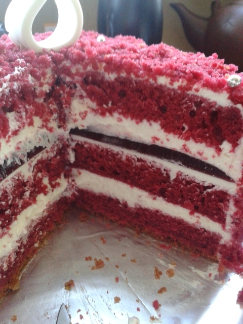рецепт брала - http://julycupcakes.blogspot.de/2012/03/red-velvet-cake-with-cream-cheese.html#.VDAUWZ8sd2c