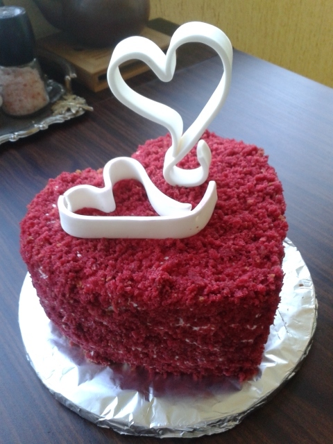 Цвет конечно подкачал, получился более бордовый чем красный.... Но краситяля много побоялась класть, жалко много было тратить, уж больно дорогой....темболее торт для себя ;-))