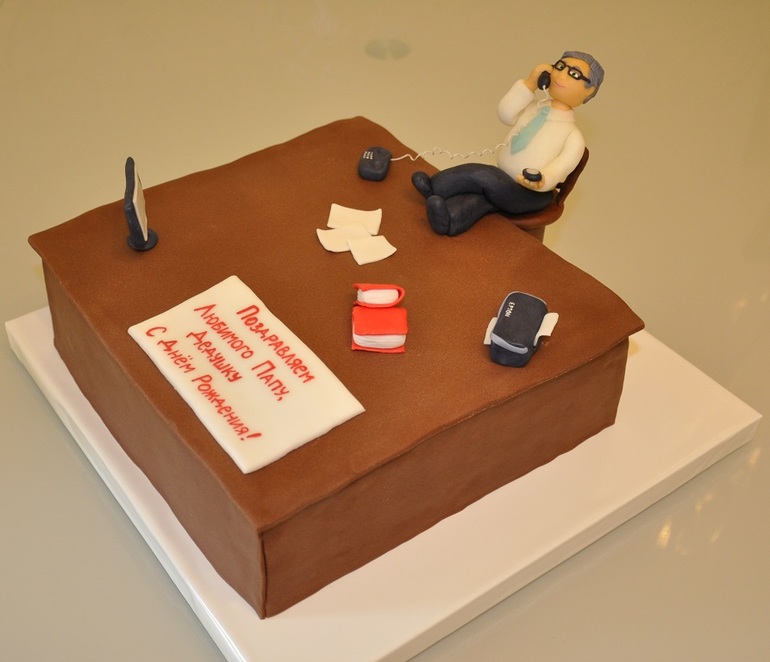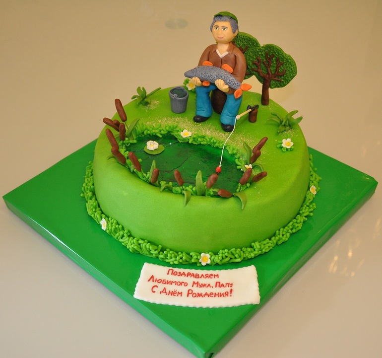 Тортики заказала девушка два на один день, прислала фото одно именинника, я так поняла, что это одному человеку, ну и сделала их (фигурки) похожими, как будто это один и тот же человек, только рыбак без очков... В итоге забирает девушка и выясняется, что один торт отцу, а второй мужу, и сыну именинника первого... Я в шоке, у меня рыбак седой, а парню не более 30лет... Расстроилась, в переписке ни слова, что это 2 разных человека!!!