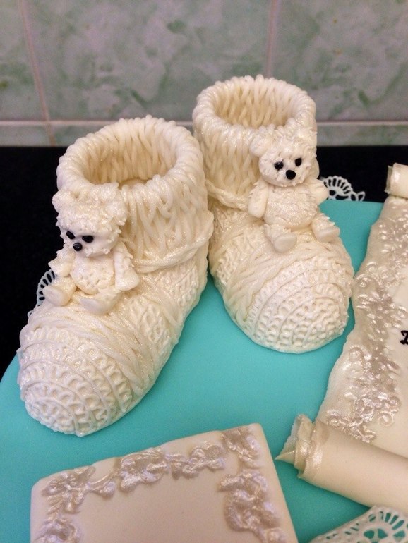 Очень красивый торт!!!!!!! Пинетки впечатлили...реально настоящие!!!!! Утащила в закладки..)