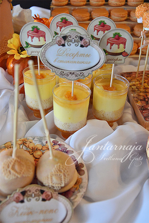 Ах да, понятное дело у меня не было никакой посуды(кроме подставки для макарон, осталась с прошлого стола и я её на всякий пожарный прихватила). Выкручивалась как могла, тарелки ,которые предоставило кафе были малюсенькими, поэтому пришлось сладости на кружевных салфетках расставлять
