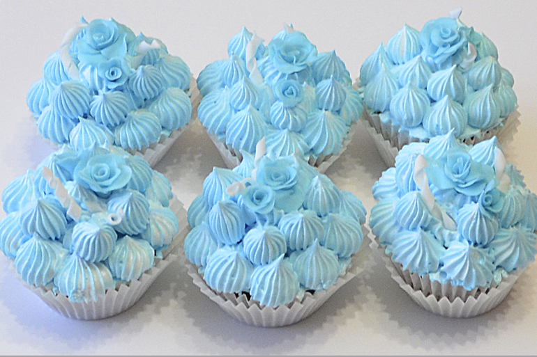 Капкейки с голубыми розочками.