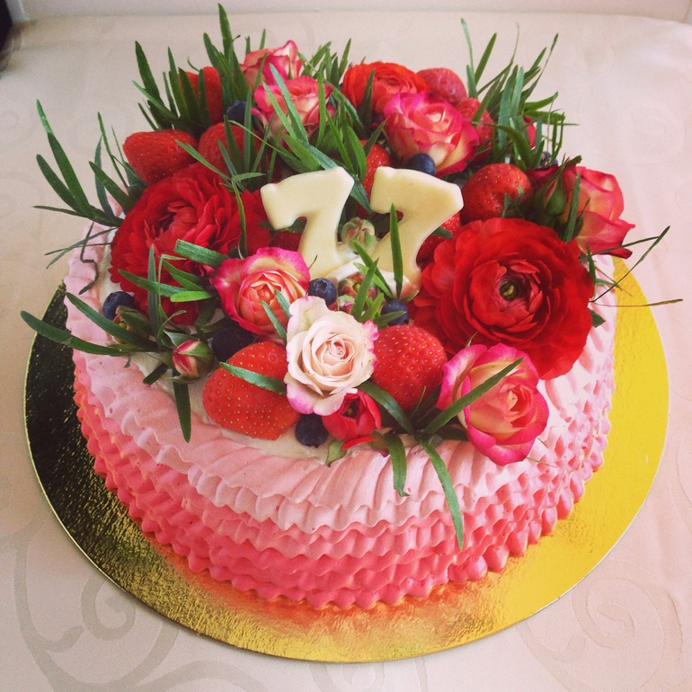 Украшение тортов кремом,шоколадом, фруктамиТорт по заказу нашей Олечки с ББ.