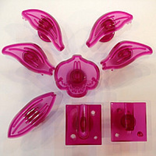 Это каттеры для орхидеи. Но такие брать не стоит, очень не удобно вытаскивать мастику из них. Я для себя сделала вывод что наиболее острые (ровные края у мастики без мелких мохрушек) металлические. У меня есть и пластиковые, но обязательно полые внутри, либо с плунжером. Я пользуюсь Гум пастой для цветов, мне очень нравится. Раньше бейклс Цветочкой пользовалась, но она одно время стала очень плохого качества + она с сероватым оттенком (по сравнению с мастикой для обтяжки) и белые цветы, на белом торте смотрятся грязными. В общем уже год с лишним я пользуюсь гум пастой