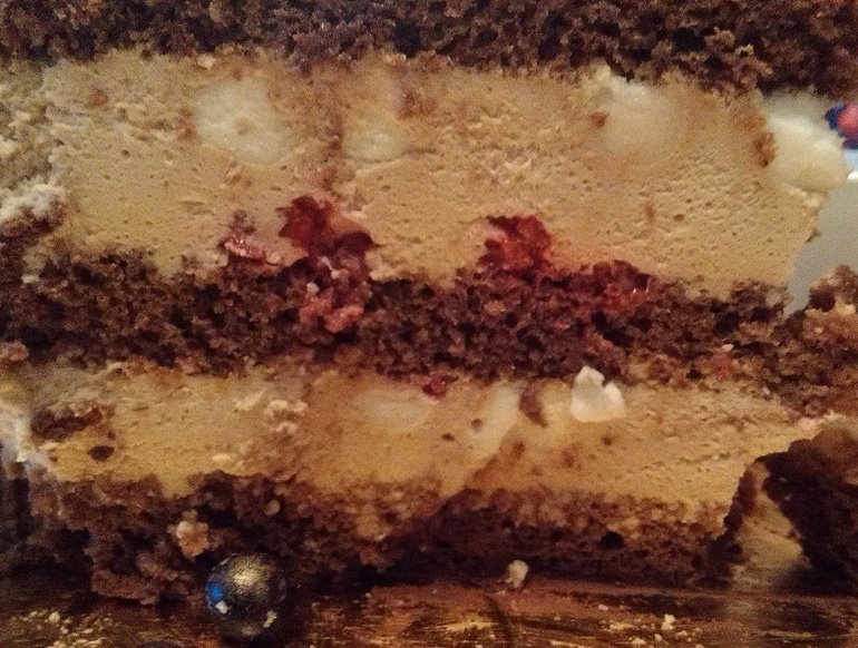 Украшение тортов кремом,шоколадом, фруктамиТорт на юбилей бабушки мужа - 90 лет. Решила зафигачить 4 кг мегашоколадного торта с малиной и суфле на основе молочного шоколада с зефирками машмеллоу (подглядела у Инны). Покрытие ганаш на основе темного шоколада. Ягоды (заморозка) - крыжовник, клюква, малина, смородина. Ну и золотая пыльца из спрея ( чет меня последнее время тянет все позолотить).