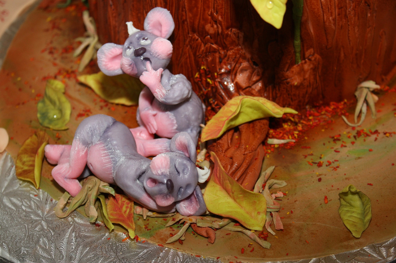 Оля, пенек такой натуральный!! Мышки-прелесть!Очень тортик понравился! Сюжет- супер!