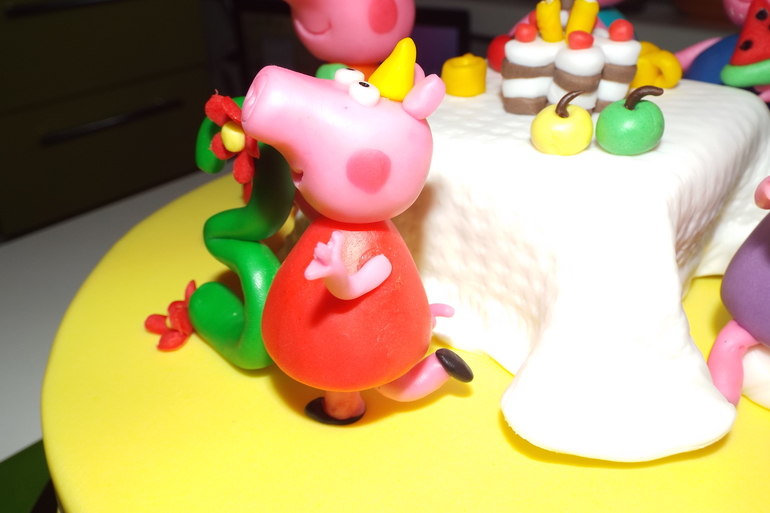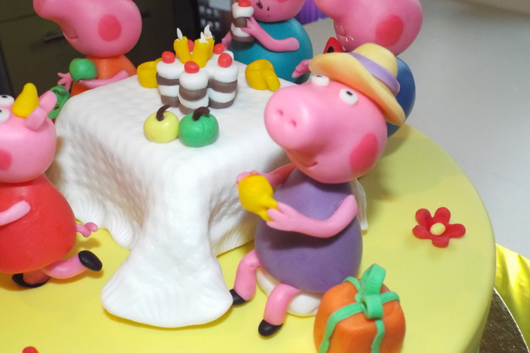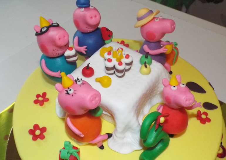 Торты детскиеСемейство лепила с удовольствием.Внутри шоколадный песочный+сливочно-сметанный крем,орехи+курага.Вес почти 3,9 кг.К торту прилагаются капкейки в этом же стиле.Двойной шоколад+карамелизированный банан.