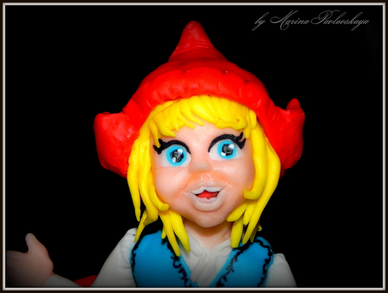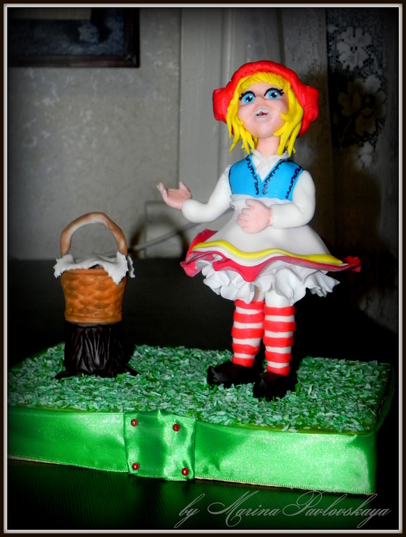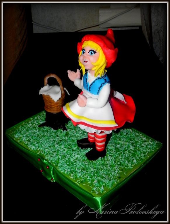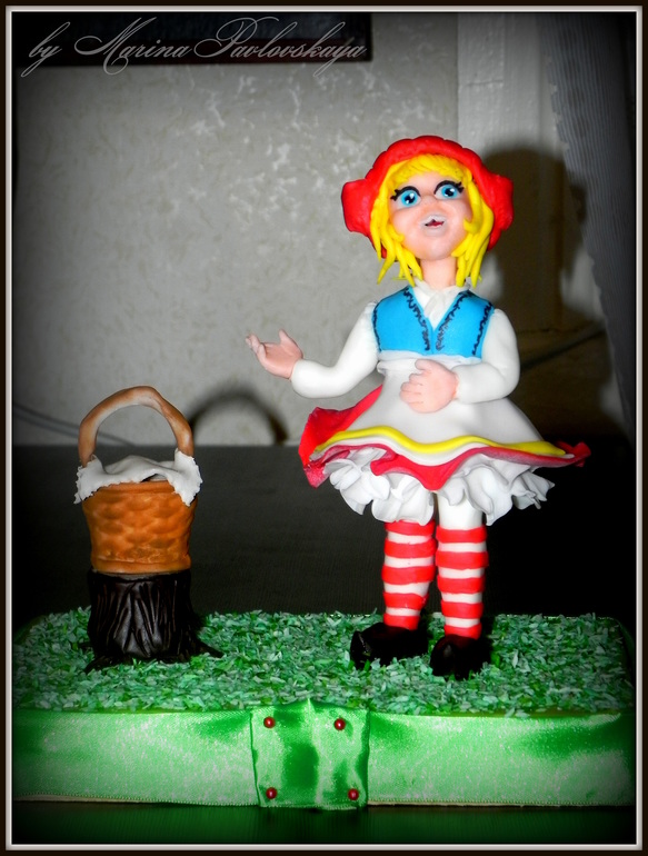 Фигурки и цветы из мастикиЗаказчица слезно умоляла спасти ее и ребенка. В саду сказали сделать поделку на тему сказок Шарля Перро. Ну что ж, сделали))) Хотелось еще, конечно, волка слепить, но времени не хватило совсем. На всю композицию ушло 6 часов. Высота Шапки 18 см.