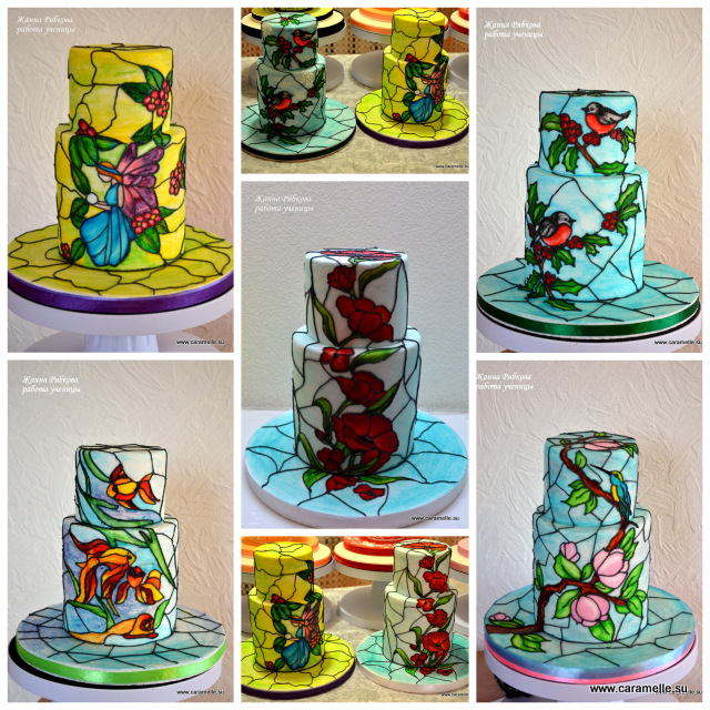 ...Недавно прошел еще один МК по росписи тортов в технике Витраж в г. Калуга. Девочки, спасибо Вам за теплый прием и дружественную атмосферу. Хочу обратить Ваше внимание на то, что ни у кого из девочек нет художественного образования))) Очень много фото, выставлять все не буду))) Поэтому коллаж из работ девочек. Больше фотографий будут в ближайшие дня у меня в группах)