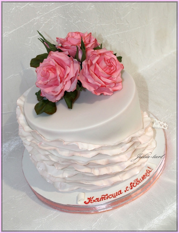 Юля,очень красивый,нежный торт вышел,а цветы как всегда потрясающе реалистичны