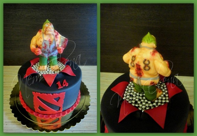 Торты детскиеТорт для любителя компьютерной игры "Dota" с персонажем Pudge. Вес 3 кг, внутри "Сникерс".