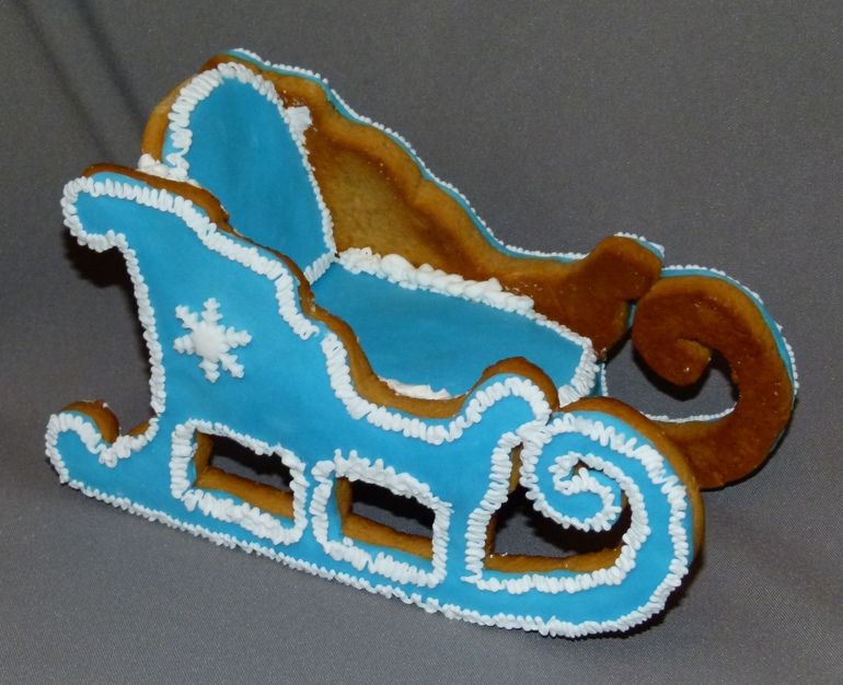 спасибо. если честно сама не в восторге — кривовато, на просушке стоят еще , покажу позже. делать довольно просто — тесто как для пряничного домика, вырезать по выкройке, испечь, украсить ( у меня мастика и глазурь) склеить и ждать нового года :))))) свой экипаж (который сушиться) дополню мешками с подарками - думаю получиться не плохо