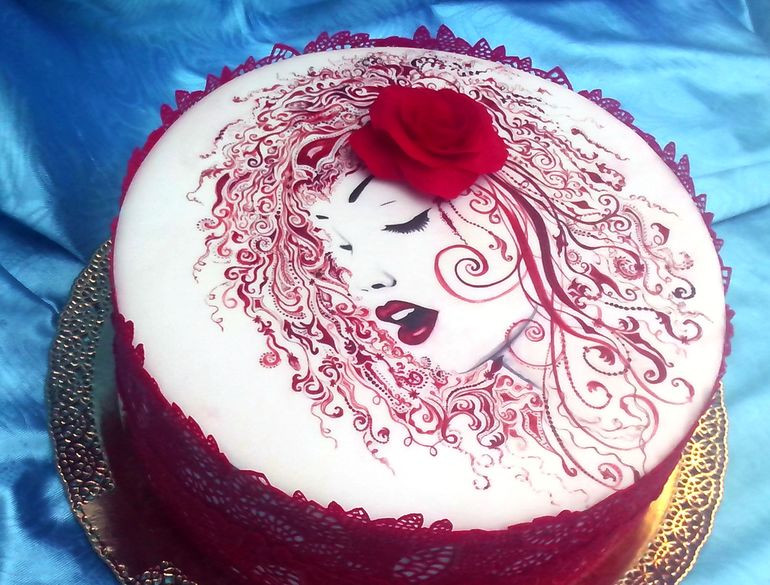 Красота! Второй торт еще сложнее, так как рисунок мельче. Сколько времени Вы это рисовали?