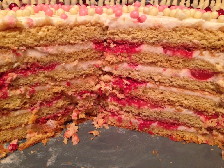 Торты для домашних и друзейна мой день рождения ))) песочный, по рецепту Торталены, не могу ссылку с тел вставить ;( Очень вкусный!!!! Муж любитель наполеона и тот съел аж три куска!!!! Внутри малина и клубника!!!!