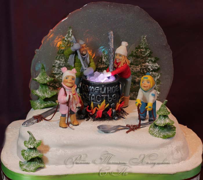 Какие фигурки!! Бесподобный торт!!! А льдинки еще и светятся!))) Шикарно)