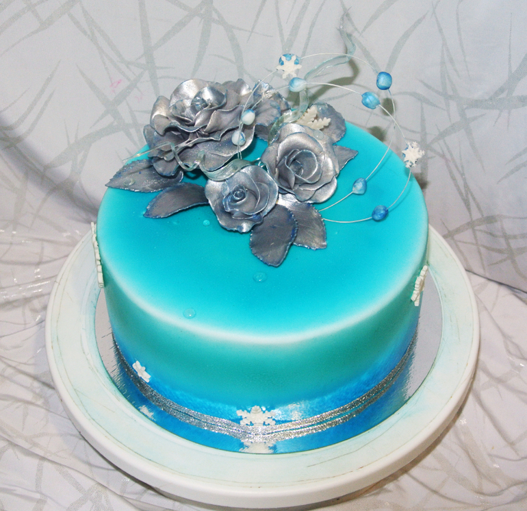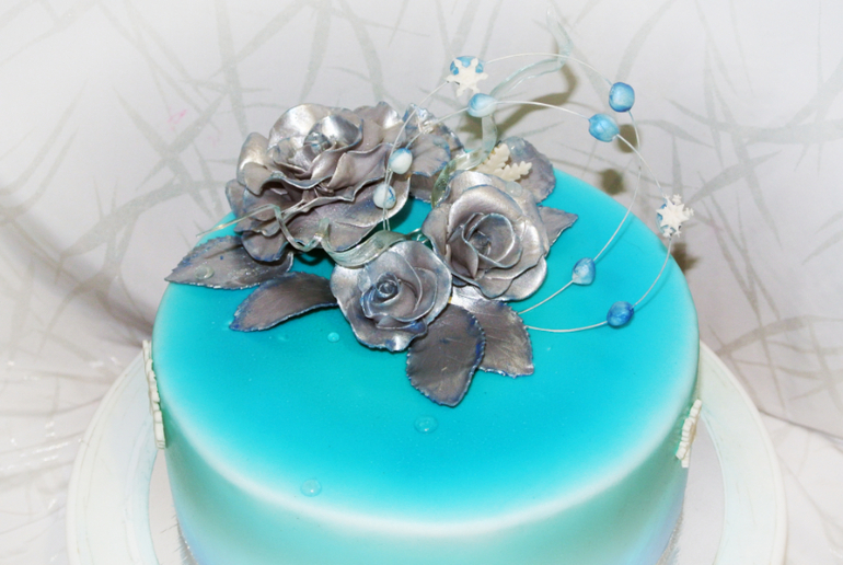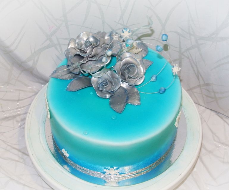 я мастику покрасила в серый цвет и на нем серебристый плотнее смотрится)