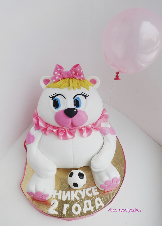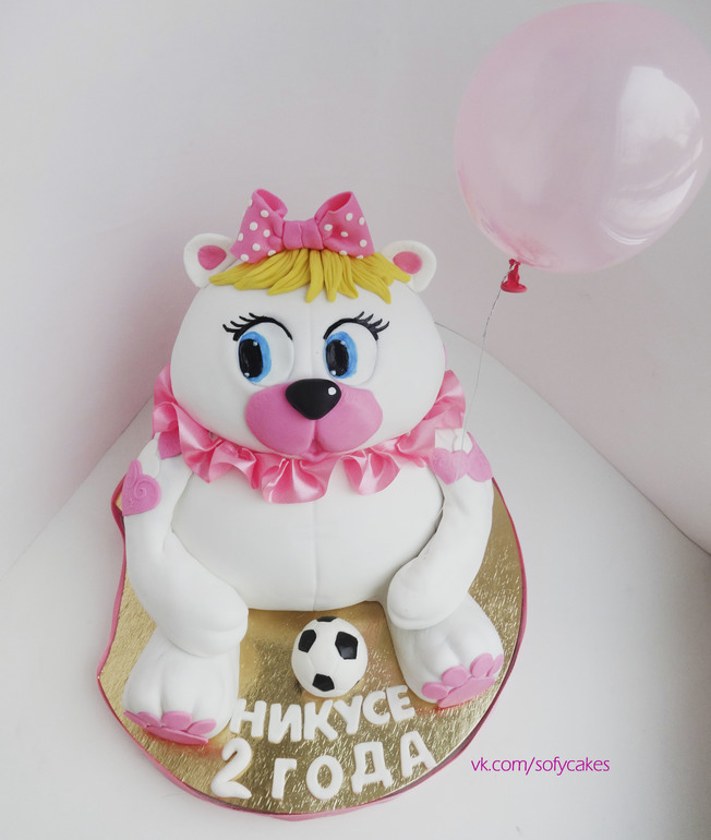 Тортик для малышки, которая обожает мишек, воздушные шарики и футбольные мячи)))