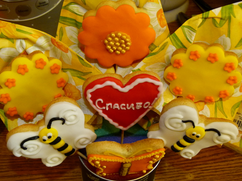 Мастер-классы по мастике и не тольконесколько раз у меня интересовались как сделать букеты из печенья. поэтому и решила написать мк как сделать такие "спасибо". может кому пригодиться:)