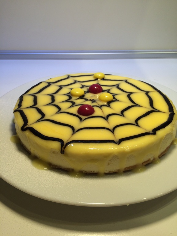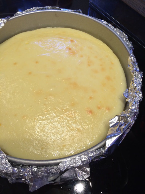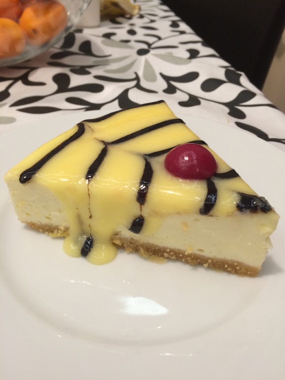 Проба пераНа 24 см, запекала на водяной бане, сверху лимонный курд. Очень вкусненький)