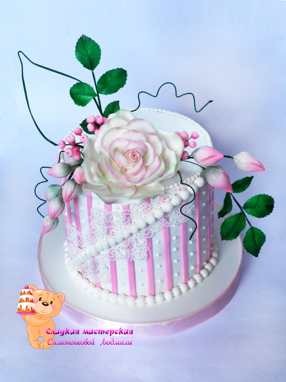 Торты для женщинТортик для замечательной женщины,моей тети)Вес 3,2кг.Внутри медовик+вишня,сливочно-сметанный крем