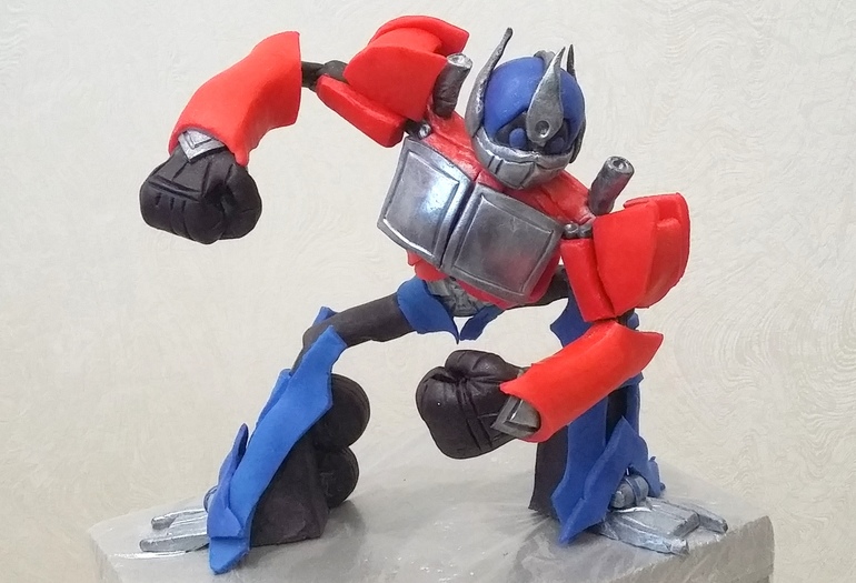 Пристрою фигурку Оптимуса Прайма. Делала просто так для себя, но может кому надо? У меня в ближайшее время заказов на торт с Трансформером нет.