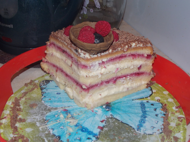 А скажите, вы фруктовую начинку отдельным слоем делали или сначала фрукт.начинка а сверху крем? Она же наверное впитывается и высокий слой не дает?