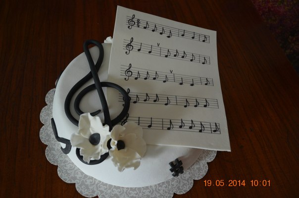 можно немного здесь похвастаюсь...лист из мастики, а ноты писала от руки пищ.фломастерами...