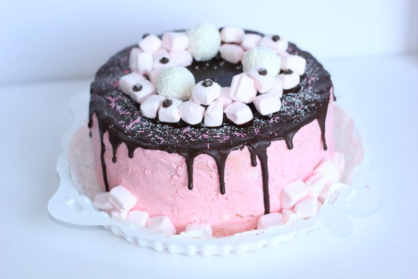 Какой позитивный тортик!!!! А розовые бочка это что за крем? Выглядит как одна большая вкусная зефирка :)