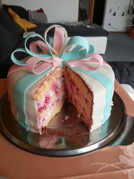 Делала все сама и все из подручных среств: бисквит делала в мультиварке, мастика из маршмеллоу, крем с творогом + малинка, выравнивала - ганаш.