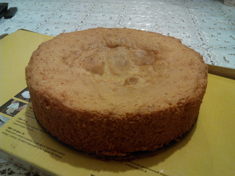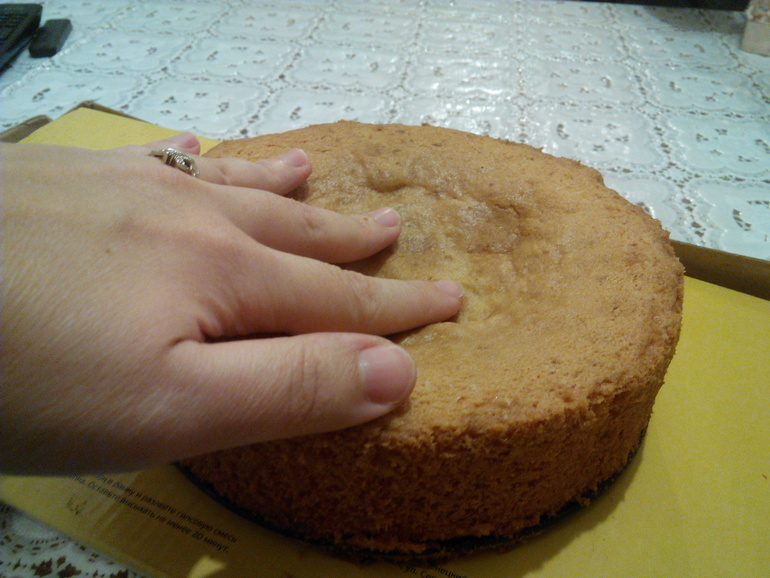 Девочки, излагаю проблему. Бисквит здесь должен был быть лимонный, который со сливочным маслом. Делала его два раза и два раза он получался вот такой, с ямой по середине: