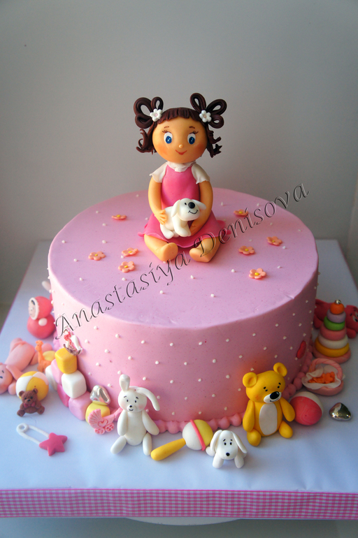 Чуточку детских )Подушка, Торт с ромашками и девочка с игрушками