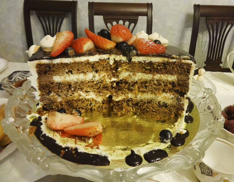 Украшение тортов кремом,шоколадом, фруктамиВнутри "Морковный" торт с домашней соленой карамелью, грецкими орешками, шоколадным кремом, кремом из творожного сыра и ноткой корицы)
