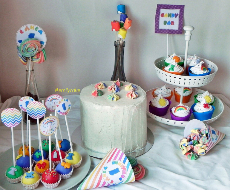 я тоже хотела написать тебе про цвета. Меренги на торте вообще грязными получились. Не стоит такое количество цветов смешивать. А так-молодец, все трудишься и трудишься!