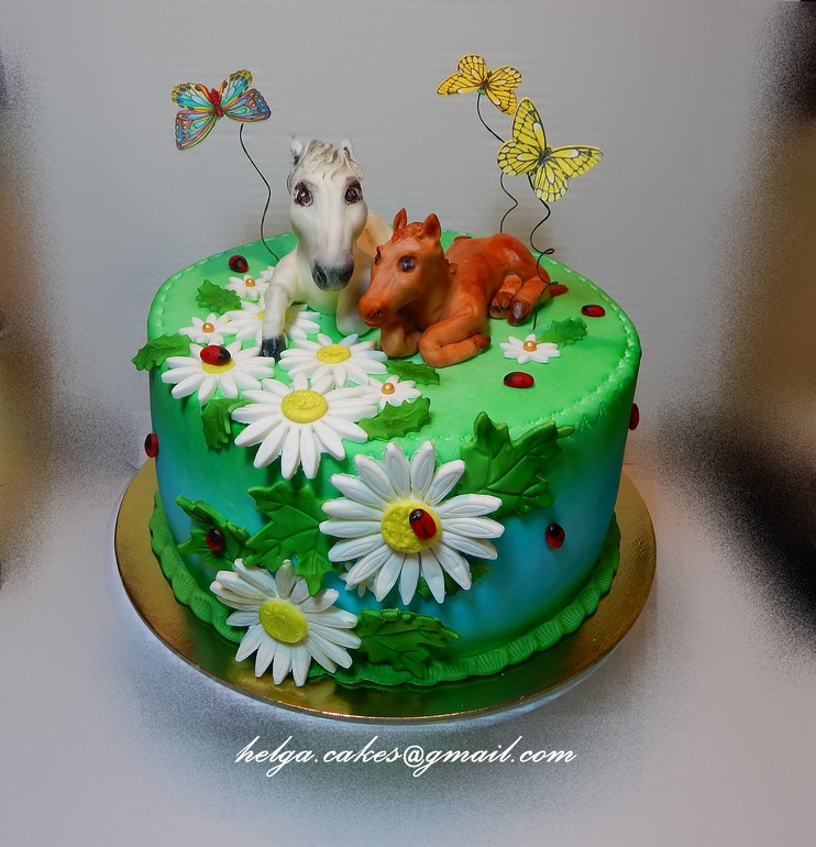 Лошадки слеплены без применения молдов. Тема ромашек навеяна тортиком Ольги (модератора), спасибо!