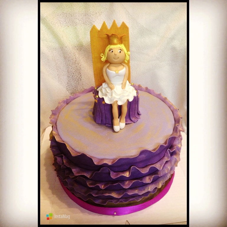 Тортик на день рождения девушки, просила - смешную принцессу на стуле-троне и фиолетовый цвет!