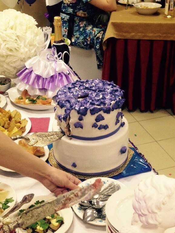 Блииин,ужас! Но хочу сказать,что доставка торта ко времени подачи тоже не панацея. У меня в том году доставка была в ресторан к 10 вечера. Вышли,подхватили легко 10кг,унесли. А в зал вывозили на хлипкой тележке с колёсами в разные стороны, вместе с тарелками-ножами. Всё кренилось в разные стороны,посуда сыпалась на пол,торт наклонился-чуть не упал,а был 4 яруса. У меня сын свидетелем был на той свадьбе,так говорит-"мам,я чуть из-за стола не рванул, торт держать,а потом морды хотел им набить за их рукожопость"... Вот и думай,где соломки постелить!.... Согласна с двочками,что в Вашем случае сделано такое специально или прросто халатное отношение(возможно и к своим продуктам и кухне),потому что работают на кухнях сейчас абы-кто.